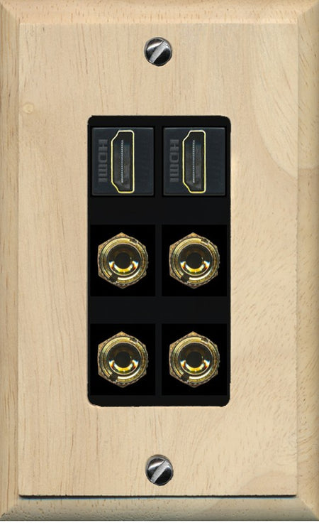 RiteAV 2 Speaker 4 Banana Binding Post Wall Plate with 2 HDMI Jacks - 1 Gang Decorative [Wood/Black]