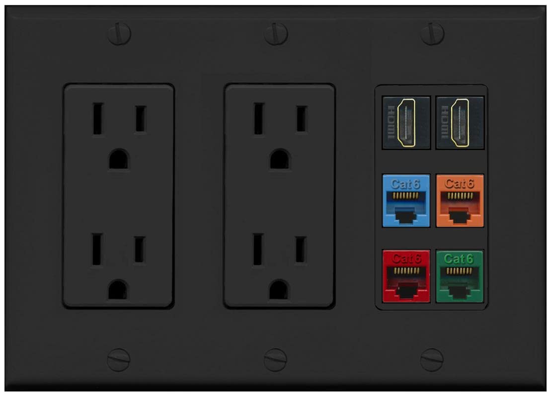 RiteAV 2 HDMI 4 Cat6 Ethernet Mixed Color Wall Plate - 3G Dual Outlet [Black/Black]