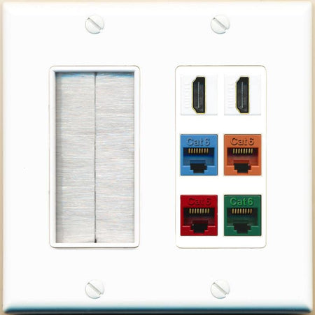 RiteAV 2 HDMI 4 Cat6 Ethernet Mixed Color Wall Plate - Brush [White/White]