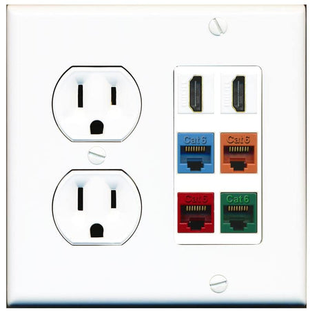 RiteAV 2 HDMI 4 Cat6 Ethernet Mixed Color Wall Plate - Round Outlet [White/White]
