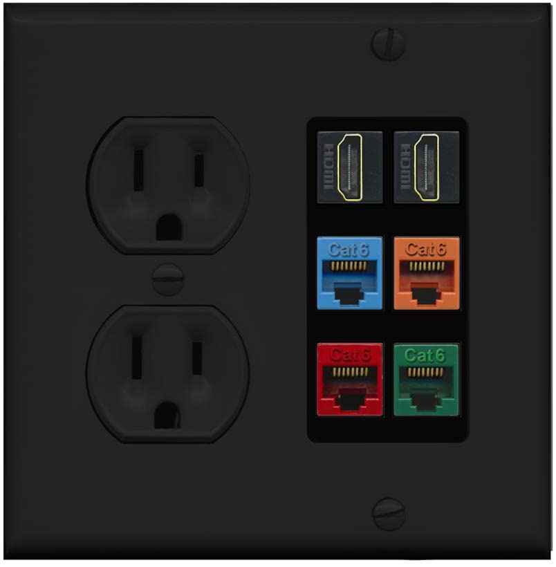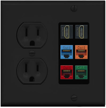 RiteAV 2 HDMI 4 Cat6 Ethernet Mixed Color Wall Plate - Round Outlet [Black/Black]