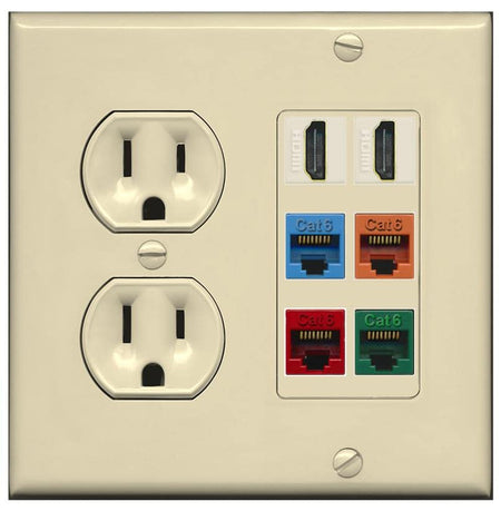 RiteAV 2 HDMI 4 Cat6 Ethernet Mixed Color Wall Plate - Round Outlet [Ivory/Ivory]