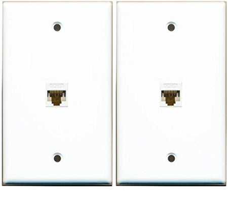 RiteAV (2 Pack) 1 Port Cat6 Rj45 Ethernet Wall Plate White Lot