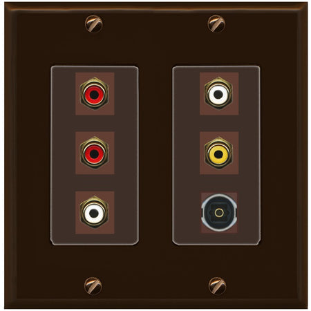 RiteAV 5 RCA (2 Red, 2 White, 1 Yellow) Toslink Wall Plate - 2 Gang [Brown/Brown]