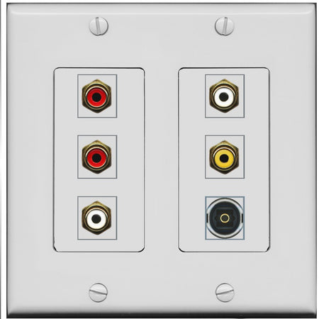 RiteAV 5 RCA (2 Red, 2 White, 1 Yellow) Toslink Wall Plate - 2 Gang [Gray/Gray]