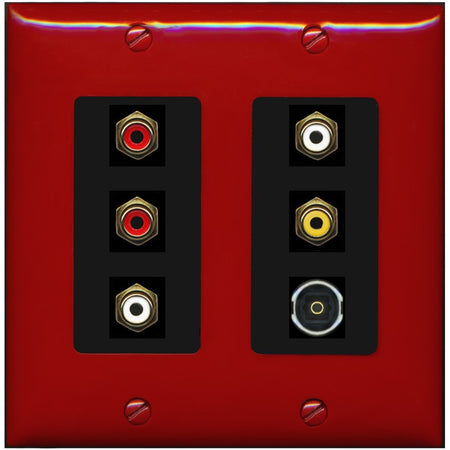 RiteAV 5 RCA (2 Red, 2 White, 1 Yellow) Toslink Wall Plate - 2 Gang [Red/Black]