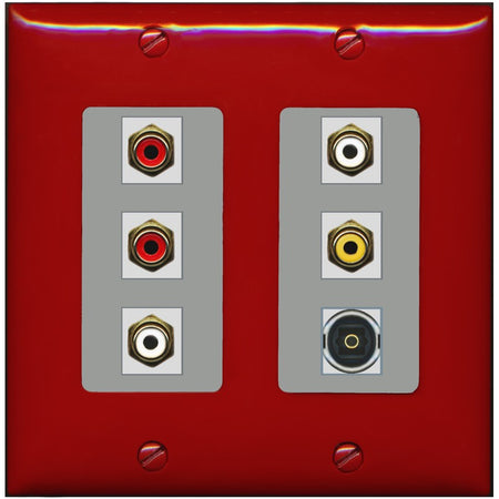 RiteAV 5 RCA (2 Red, 2 White, 1 Yellow) Toslink Wall Plate - 2 Gang [Red/Gray]