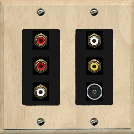 RiteAV 5 RCA (2 Red, 2 White, 1 Yellow) Toslink Wall Plate - 2 Gang [Wood/Black]