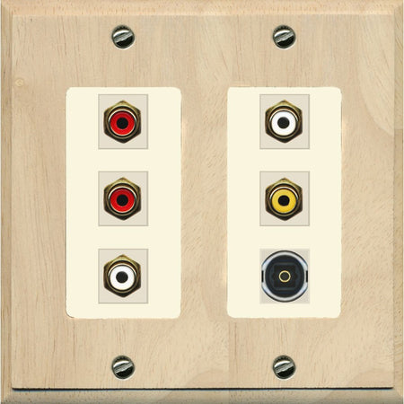 RiteAV 5 RCA (2 Red, 2 White, 1 Yellow) Toslink Wall Plate - 2 Gang [Wood/Light-Almond]