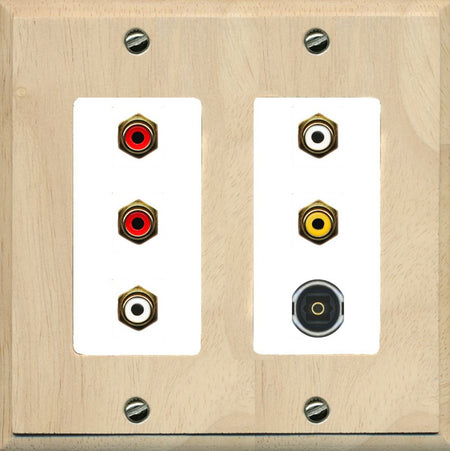 RiteAV 5 RCA (2 Red, 2 White, 1 Yellow) Toslink Wall Plate - 2 Gang [Wood/White]