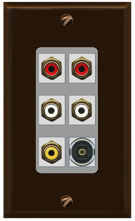 RiteAV 5 RCA (2 Red, 2 White, 1 Yellow) Toslink Wall Plate - 1 Gang Decorative [Brown/Gray]