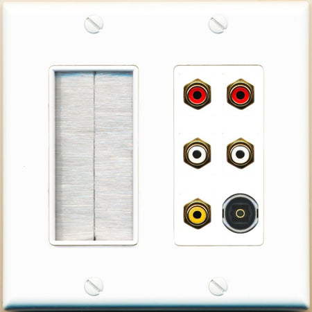 RiteAV 5 RCA (2 Red, 2 White, 1 Yellow) Toslink Wall Plate - Brush [White]