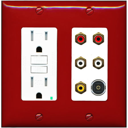 RiteAV 5 RCA (2 Red, 2 White, 1 Yellow) Toslink Wall Plate - GFCI Outlet [Red/White]