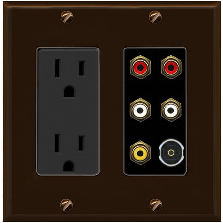 RiteAV 5 RCA (2 Red, 2 White, 1 Yellow) Toslink Wall Plate - Outlet [Brown/Black]