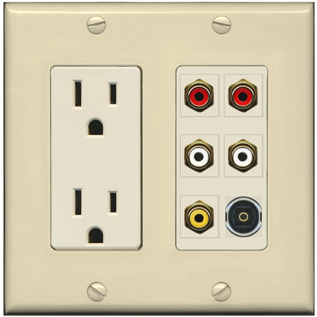RiteAV 5 RCA (2 Red, 2 White, 1 Yellow) Toslink Wall Plate - Outlet [Ivory/Light-Almond]