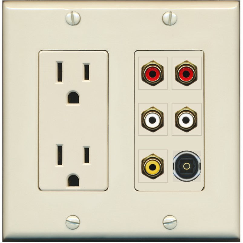 RiteAV 5 RCA (2 Red, 2 White, 1 Yellow) Toslink Wall Plate - Outlet [Light-Almond]
