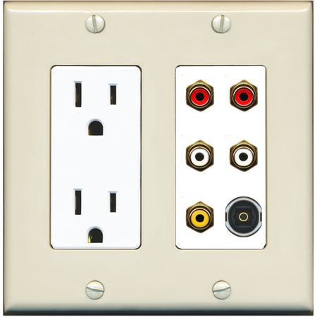 RiteAV 5 RCA (2 Red, 2 White, 1 Yellow) Toslink Wall Plate - Outlet [Light-Almond/White]
