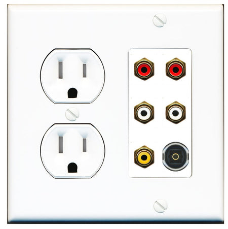 Increase quantity for RiteAV 5 RCA (2 Red, 2 White, 1 Yellow) Toslink Wall Plate - Tamper Resistant Outlet [Round White]