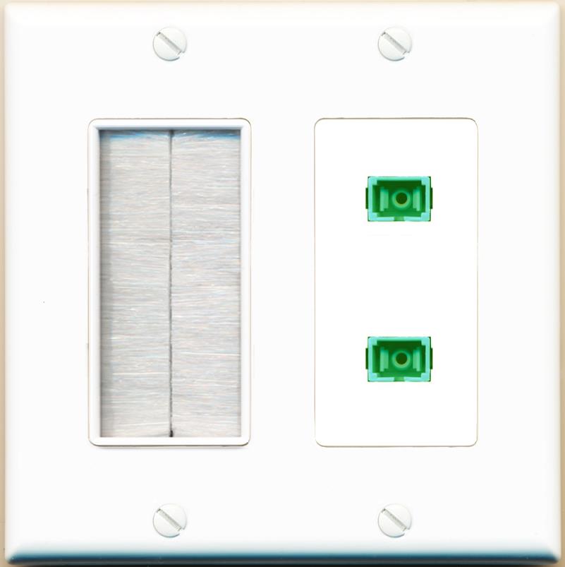 Increase quantity for RiteAV 2 Port Fiber Optic Coupler Jack SC Simplex Singlemode APC Wall Plate-1 Gang White