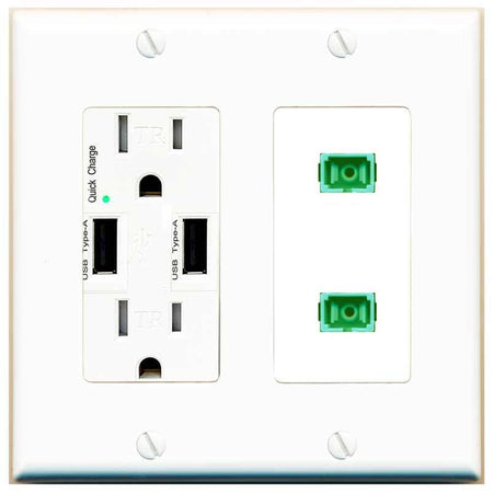 RiteAV 2 Port Fiber Optic Coupler Jack SC Simplex Singlemode APC Wall Plate-USB Charger White