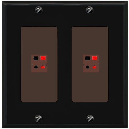 RiteAV 2 Port Speaker Wire Plug Jack Wall Plate - 2 Gang [Black/Brown]