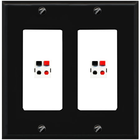 RiteAV 2 Port Speaker Wire Plug Jack Wall Plate - 2 Gang [Black/White]