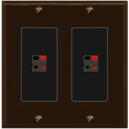 RiteAV 2 Port Speaker Wire Plug Jack Wall Plate - 2 Gang [Brown/Black]