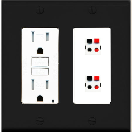 RiteAV 2 Port Speaker Wire Plug Jack Wall Plate - GFCI Outlet [Black/White]