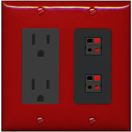 RiteAV 2 Port Speaker Wire Plug Jack Wall Plate - Outlet [Red/Black]