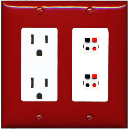 RiteAV 2 Port Speaker Wire Plug Jack Wall Plate - Outlet [Red/White]