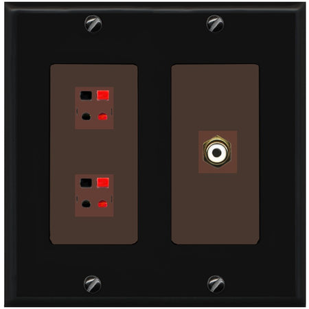 RiteAV 2 Port Speaker Wire Plug Jack Wall Plate with 1 RCA for Subwoofer - 2 Gang [Black/Brown]