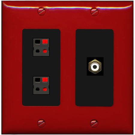 RiteAV 2 Port Speaker Wire Plug Jack Wall Plate with 1 RCA for Subwoofer - 2 Gang [Red/Black]