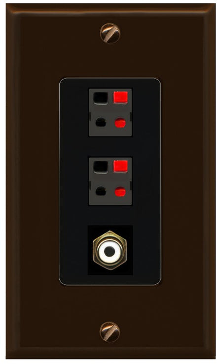 RiteAV 2 Port Speaker Wire Plug Jack Wall Plate with 1 RCA for Subwoofer - 1 Gang Decorative [Brown/Black]