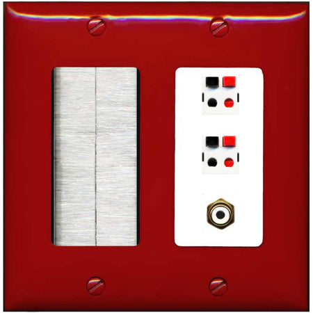 RiteAV 2 Port Speaker Wire Plug Jack Wall Plate with 1 RCA for Subwoofer - Brush [Red/White]