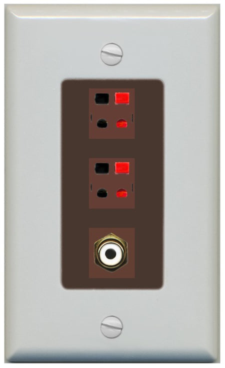 RiteAV 2 Port Speaker Wire Plug Jack Wall Plate with 1 RCA for Subwoofer - 1 Gang Decorative [Gray/Brown]