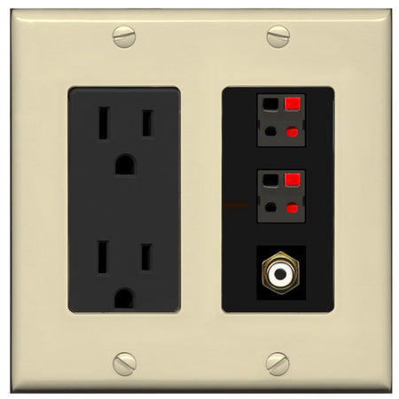 RiteAV 2 Port Speaker Wire Plug Jack Wall Plate with 1 RCA for Subwoofer - Outlet [Ivory/Black]