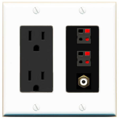 RiteAV 2 Port Speaker Wire Plug Jack Wall Plate with 1 RCA for Subwoofer - Outlet [White/Black]