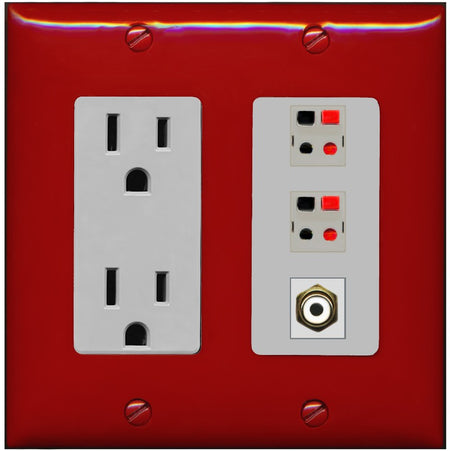 RiteAV 2 Port Speaker Wire Plug Jack Wall Plate with 1 RCA for Subwoofer - Outlet [Red/Gray]
