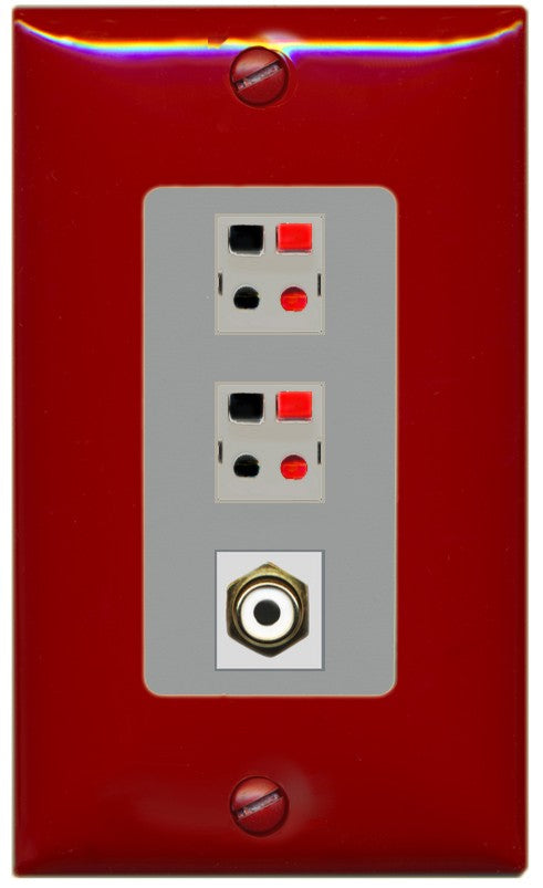RiteAV 2 Port Speaker Wire Plug Jack Wall Plate with 1 RCA for Subwoofer - 1 Gang Decorative [Red/Gray]