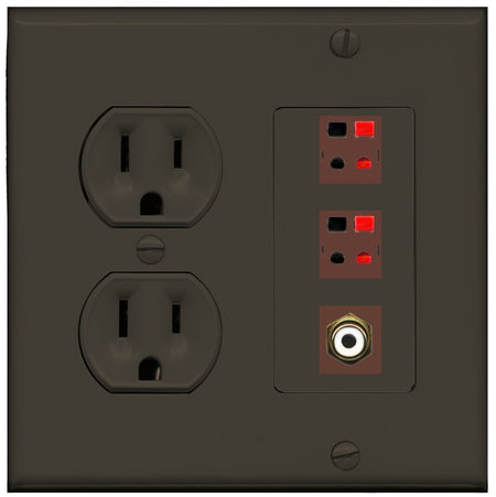 RiteAV 2 Port Speaker Wire Plug Jack Wall Plate with 1 RCA for Subwoofer - Round Outlet [Brown/Brown]