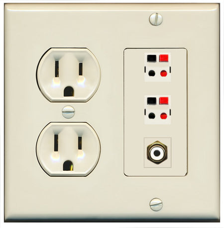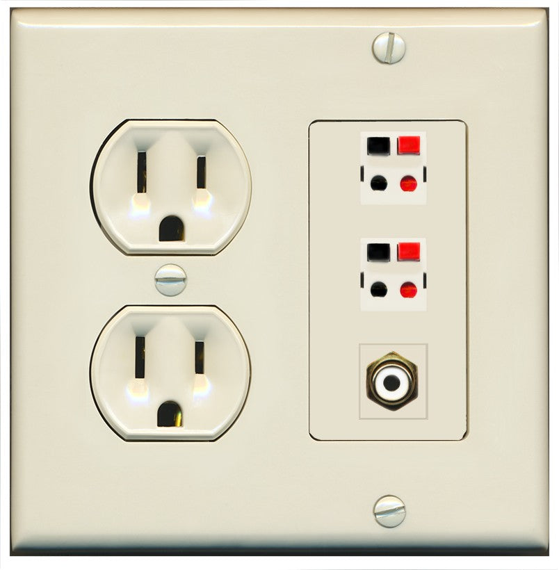 RiteAV 2 Port Speaker Wire Plug Jack Wall Plate with 1 RCA for Subwoofer - Round Outlet [Light-Almond]