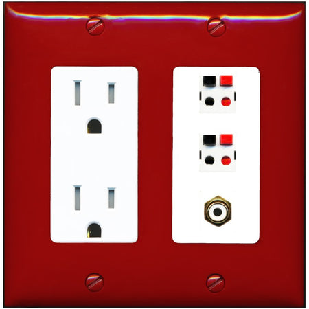 RiteAV 2 Port Speaker Wire Plug Jack Wall Plate with 1 RCA for Subwoofer - Tamper-Resistant Outlet [Red/White]