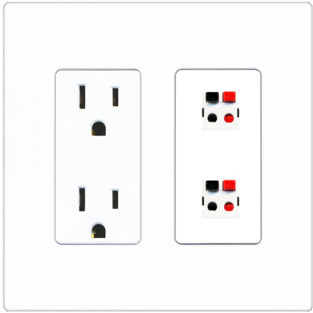 Increase quantity for RiteAV 2 Port Speaker Wire Plug Jack Wall Plate - Outlet [Screwless White]