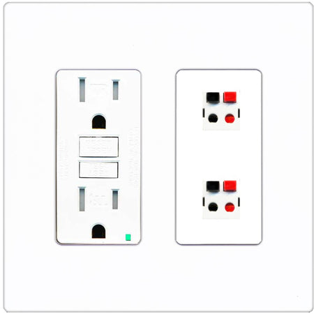 RiteAV 2 Port Speaker Wire Plug Jack Wall Plate - GFCI Outlet [Screwless White]