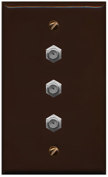 RiteAV - 3 Port Coax Cable TV- F-Type Wall Plate - Flat Style [Brown/Brown]