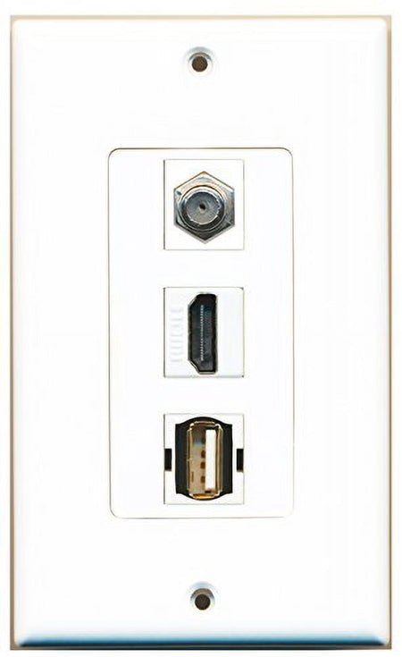 RiteAV - 1 Port HDMI and 1 Port Coax Cable TV- F-Type and 1 Port USB A-A Decorative Wall Plate