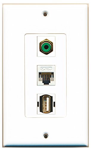 RiteAV - 1 Port RCA Green and 1 Port USB A-A and 1 Port Cat5e Ethernet White Decora Wall Plate