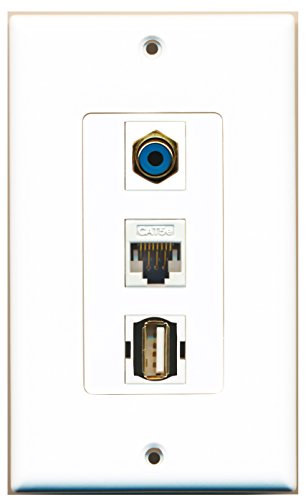 RiteAV 1 Port RCA Blue 1 Port USB A-A 1 Port Cat5e Ethernet White Wall Plate OVERSIZED