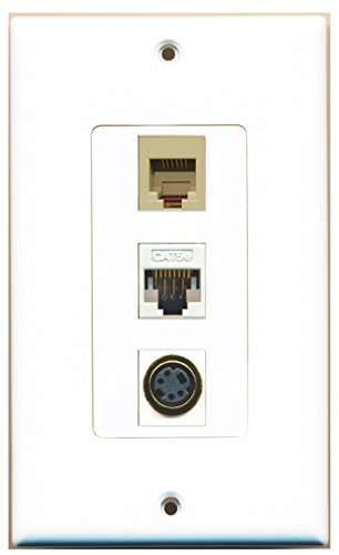 RiteAV - 1 Port Phone RJ11 RJ12 Beige and 1 Port S-Video and 1 Port Cat5e Ethernet White Decora Wall Plate
