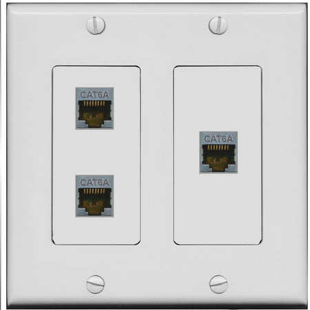 RiteAV 3 Port Cat6A Ethernet Wall Plate - 2 Gang [Gray/Gray]